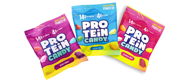 Protein Candy offers delicious candy in multiple flavors with the added benefit of 14g of protein and only 4g of sugar per serving. It’s not a gummy, it’s not a chew, it’s Protein Candy!