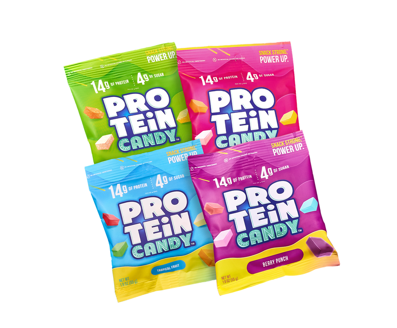 Protein Candy offers delicious candy in multiple flavors with the added benefit of 14g of protein and only 4g of sugar per serving. It’s not a gummy, it’s not a chew, it’s Protein Candy!