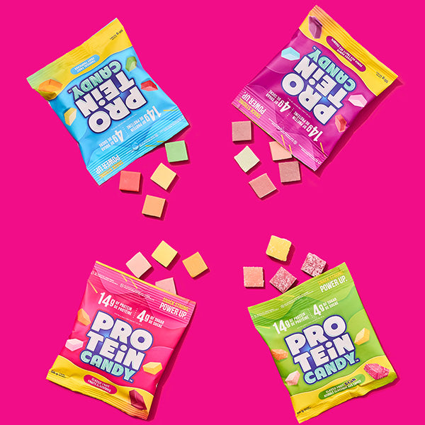 Protein Candy is designed to turn your candy habit into the ultimate power up with 14g of protein, 4g of fiber, only 4g of sugar in each bag.