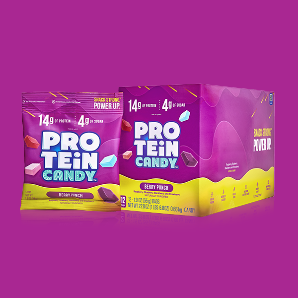 Chewy berry flavored Protein Candy that delivers a bold punch. Perfect for snacking at home or on the go.