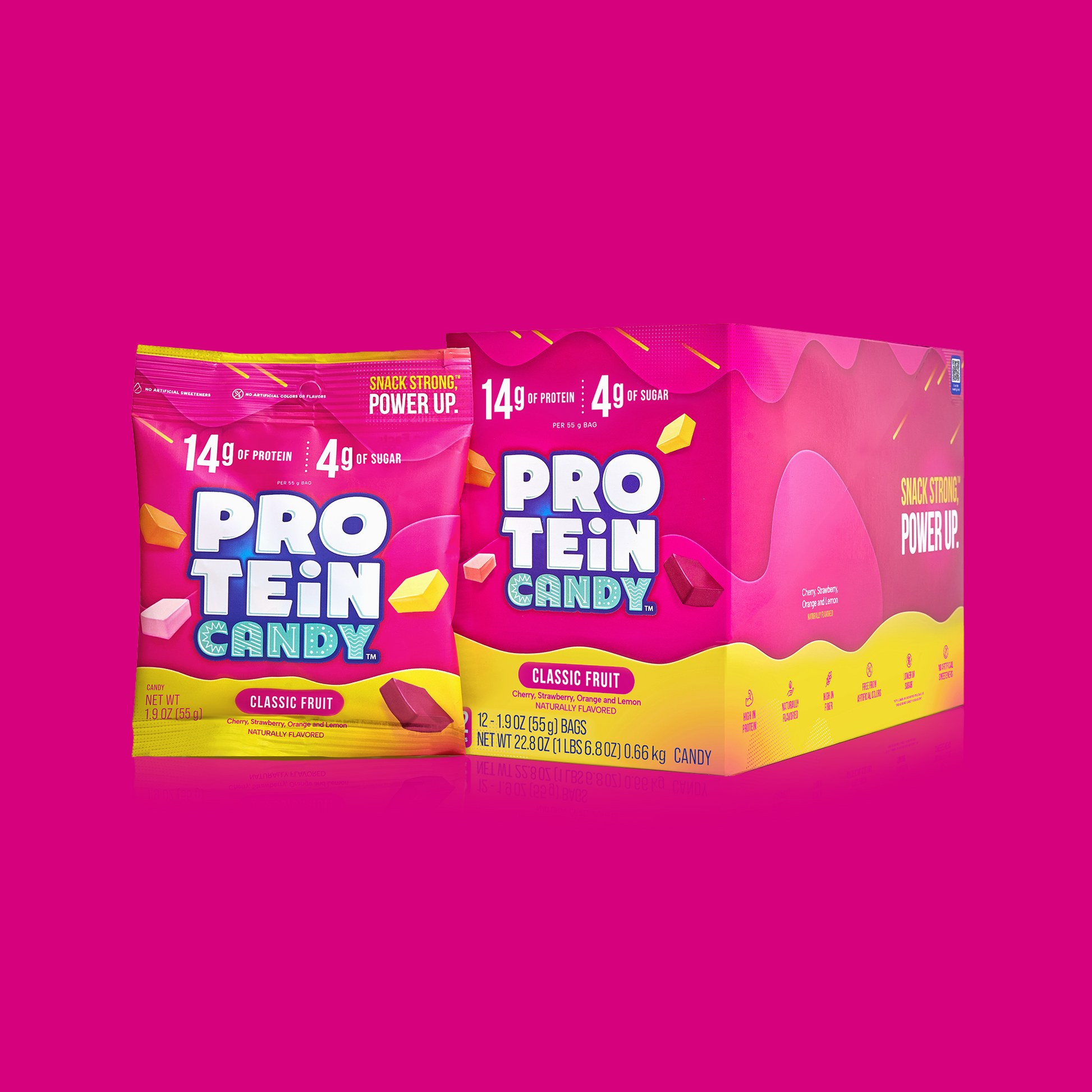 Chewy, fruity Protein Candy made to power up your day at home or on the go.
