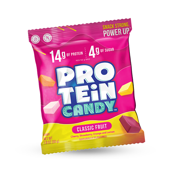 Protein Candy offers delicious candy in multiple flavors with the added benefit of 14g of protein and only 4g of sugar per serving.