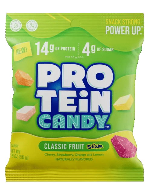 Protein Candy offers delicious candy in multiple flavors with the added benefit of 14g of protein and only 4g of sugar per serving.