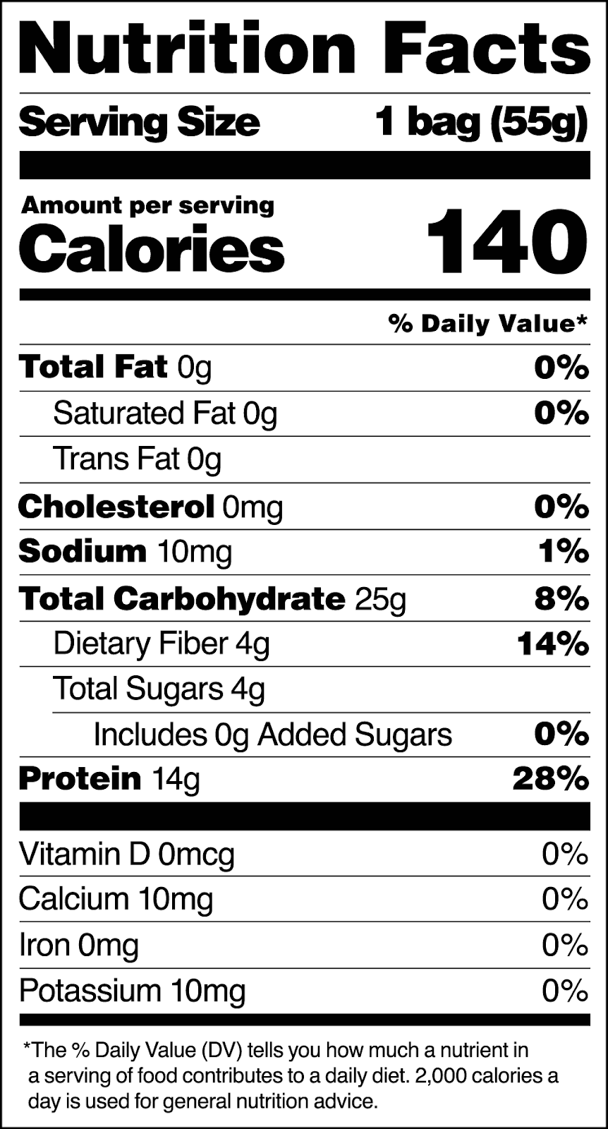 14g of protein and only 4g of sugar in every bag.